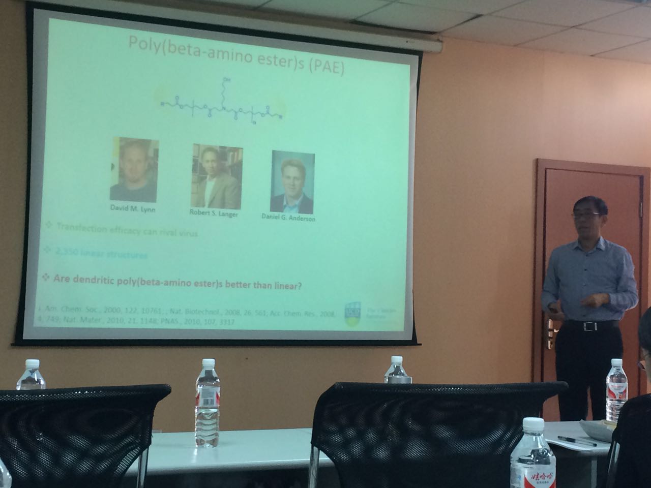 应课题组邀请,都柏林大学医学院查尔斯皮肤医学科学研究中心、天津大学材料科学与工程学院王文新教授于2016年11月3日访问课题组,并作题为:高性能聚合物基因载体的设计以及在治疗隐性遗传性大疱性表皮松解症的应用的精彩报告。报告结束后,王文新教授与课题组部分教师和学生进行了深入的学术探讨和交流。