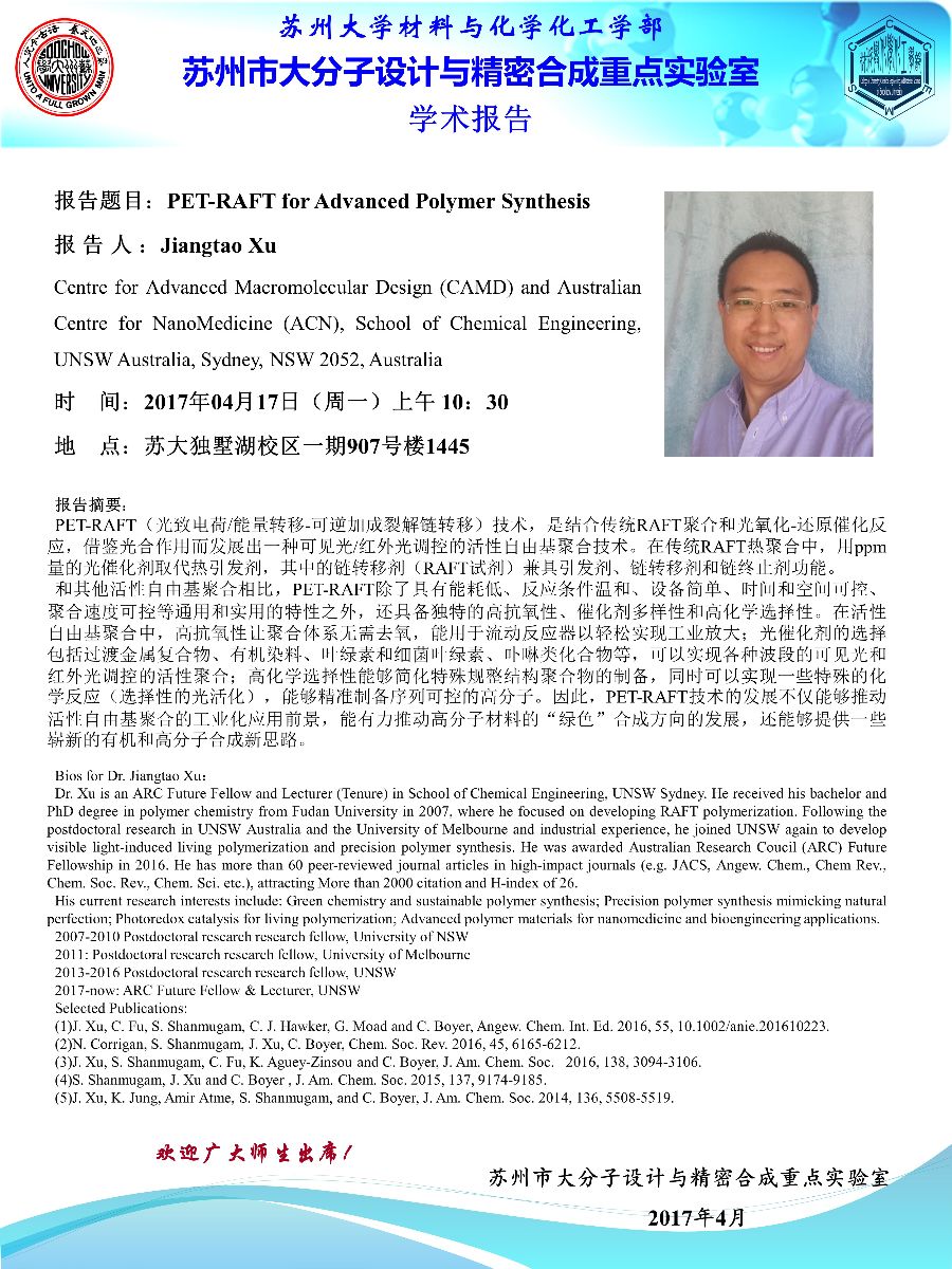 徐江涛教授报告:PET-RAFT for Advanced Polymer Synthesis