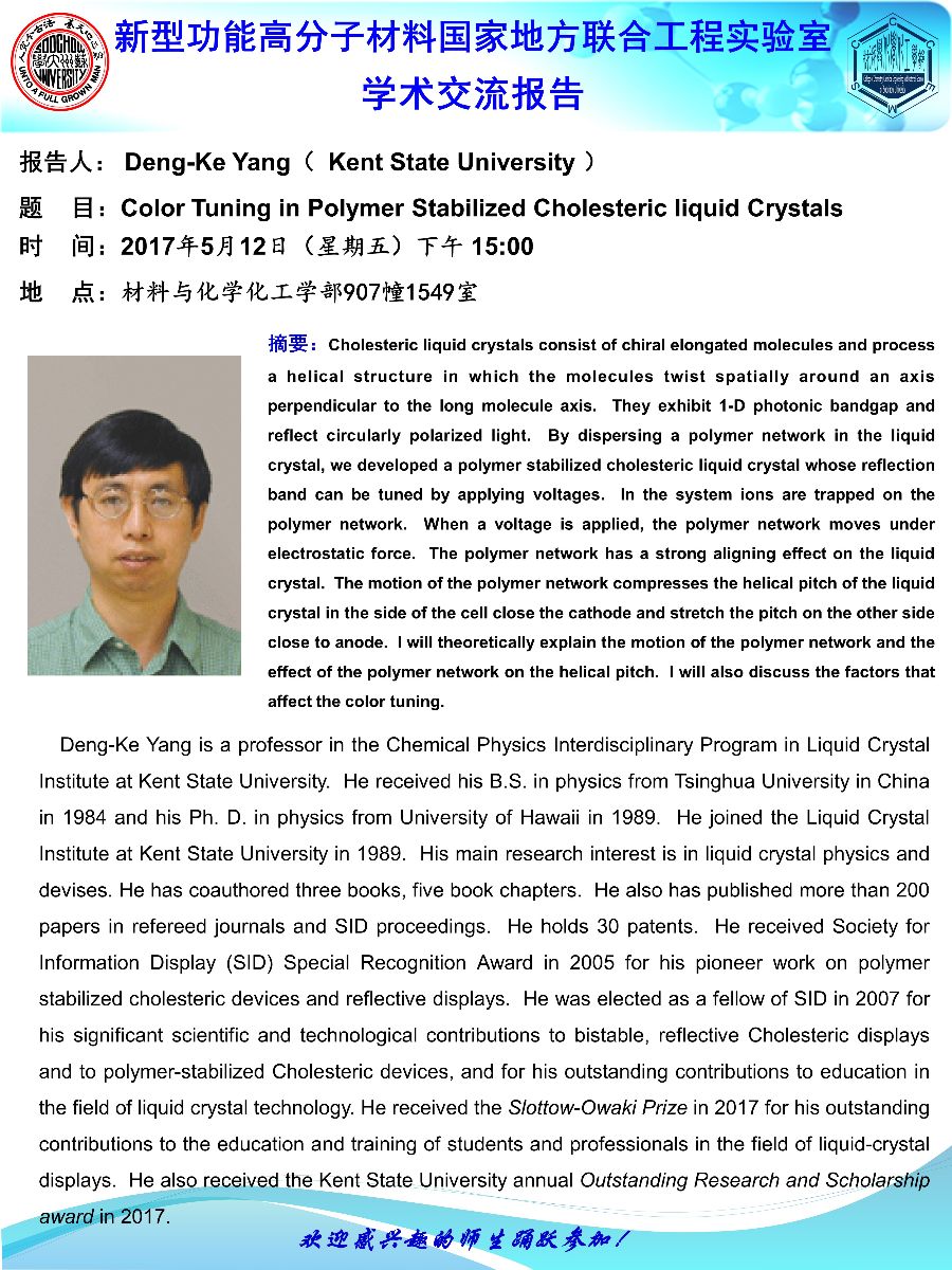 杨登科教授报告:Color Tuning in Polymer Stabilized Cholesteric liquid Crystals