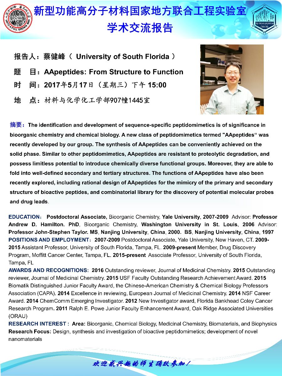 蔡健峰教授报告:AApeptides: From Structure to Fuction
