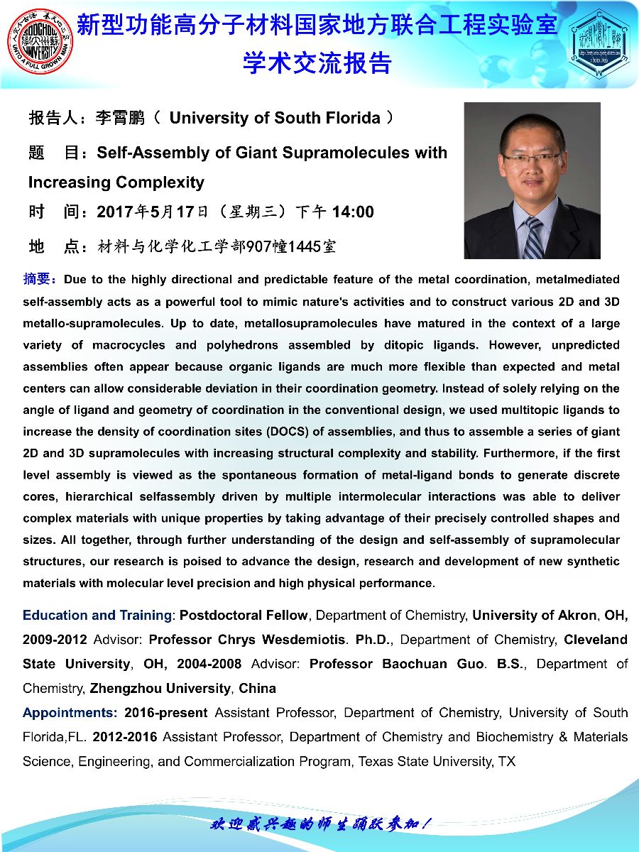 李霄鹏教授报告:Self-Assembly of Giant Supramolecules with Increasing Complexity