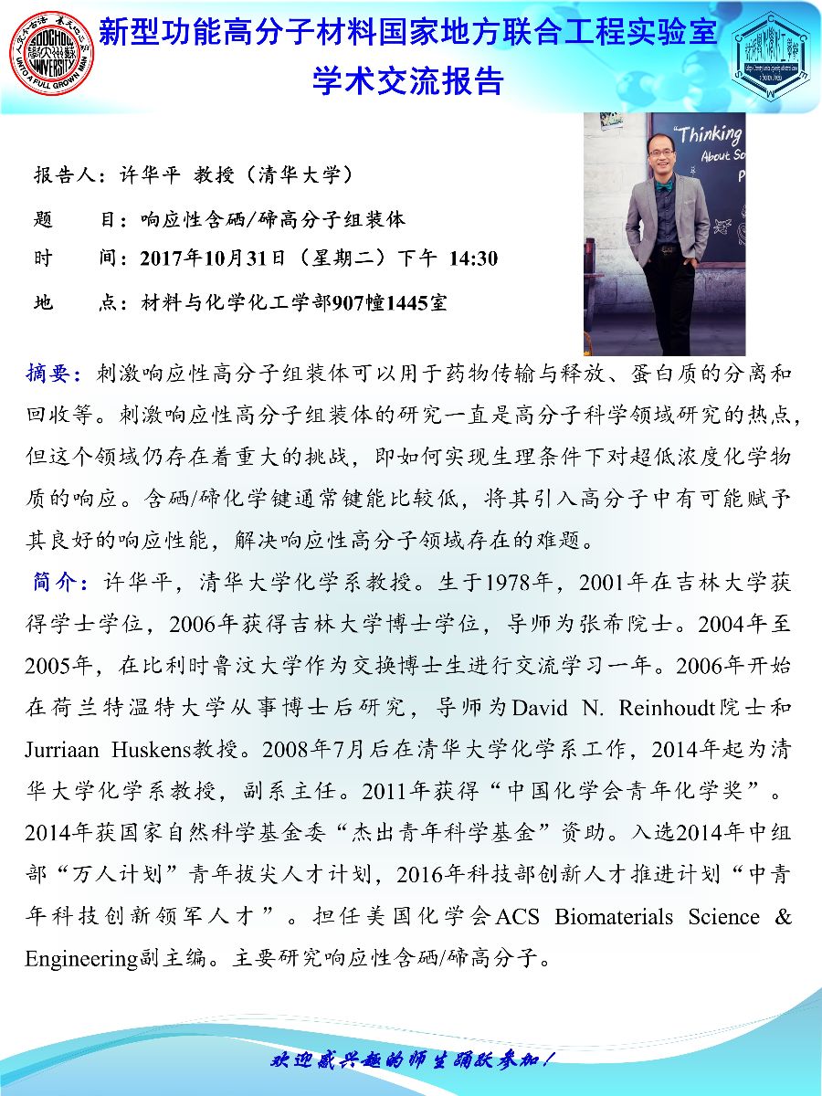 2017年10月31日清华大学许华平教授应邀来课题组访问