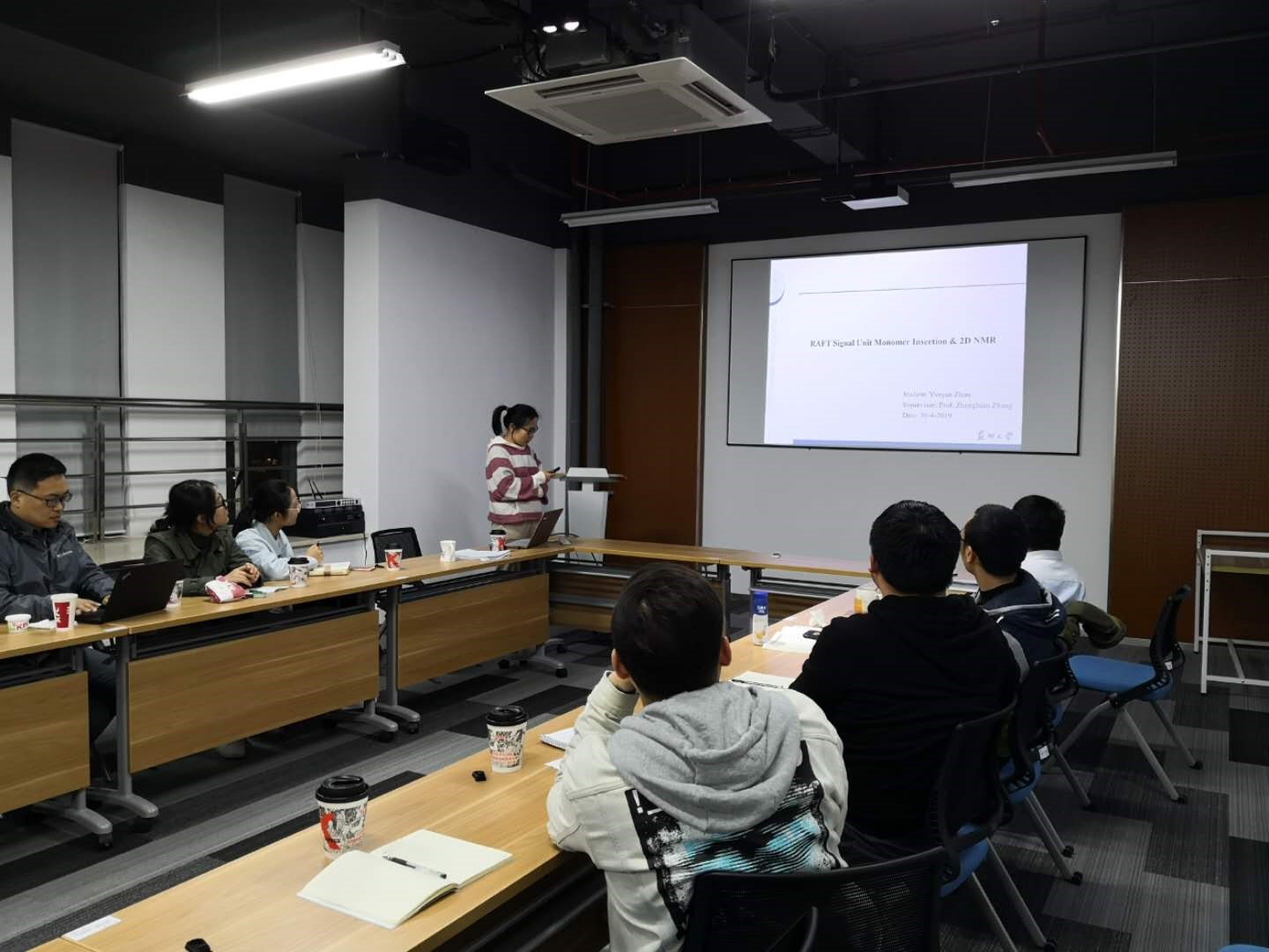 2019年4月30日晚18:00,苏州大学朱秀林课题组学术沙龙活动第一期在912-1114成功举办,本期的沙龙主题是安晓伟博士作题为Selenium-Containing Polymers: Perspectives toward Diverse Applications in Both Adaptive and Biomedical Materials的汇报,以及周艳艳博士关于Single Unit Monomer Insertion & 2D NMR的介绍。本次沙龙参与人员包括朱秀林课题组全体博士、准博士研究生和三位硕士研究生,在这场学术盛宴中,每个人都积极踊跃地提出自己的问题,相互交流想法,拓展自我认知,让原本预定的两小时活动时间延长到了三个多小时,最终在21:30圆满结束。