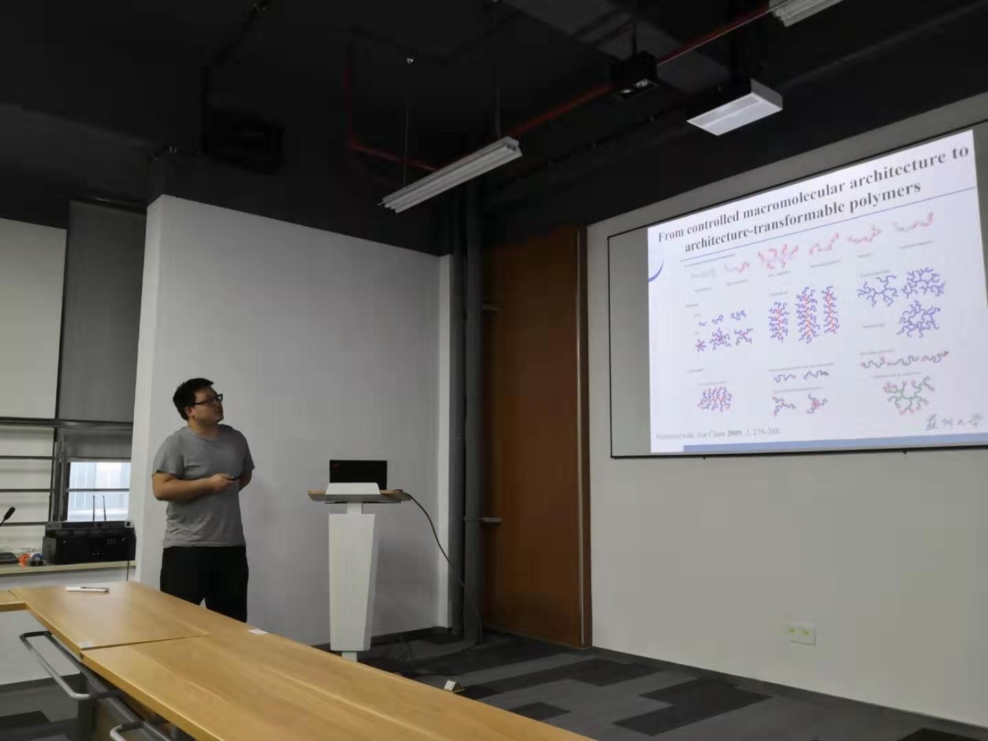 首先,由张留乔博士开始汇报,他基于自己的课题设想介绍了由大分子休眠单体进行接枝共聚物合成的常用方法和策略,通过大分子休眠单体的特性制备含有一定序列的接枝共聚物。