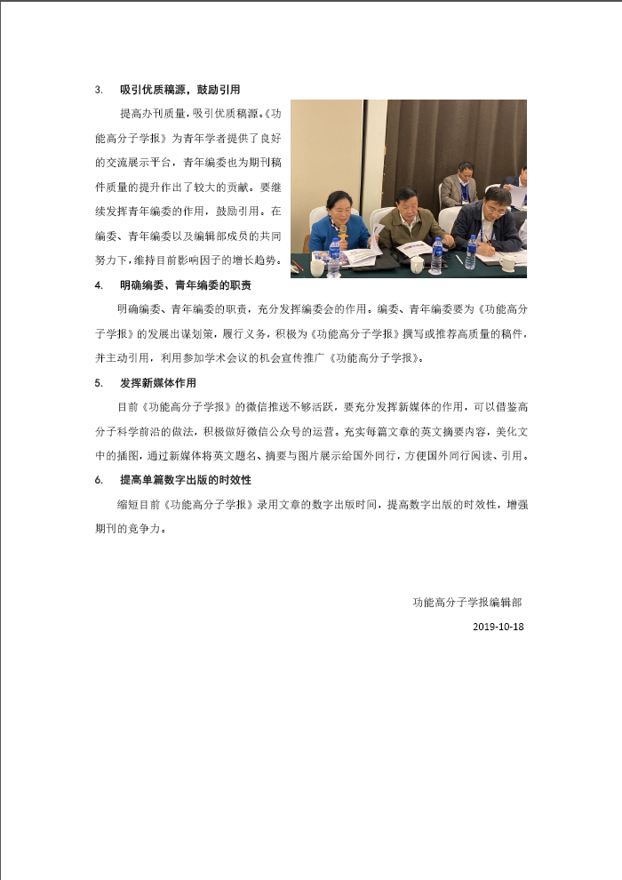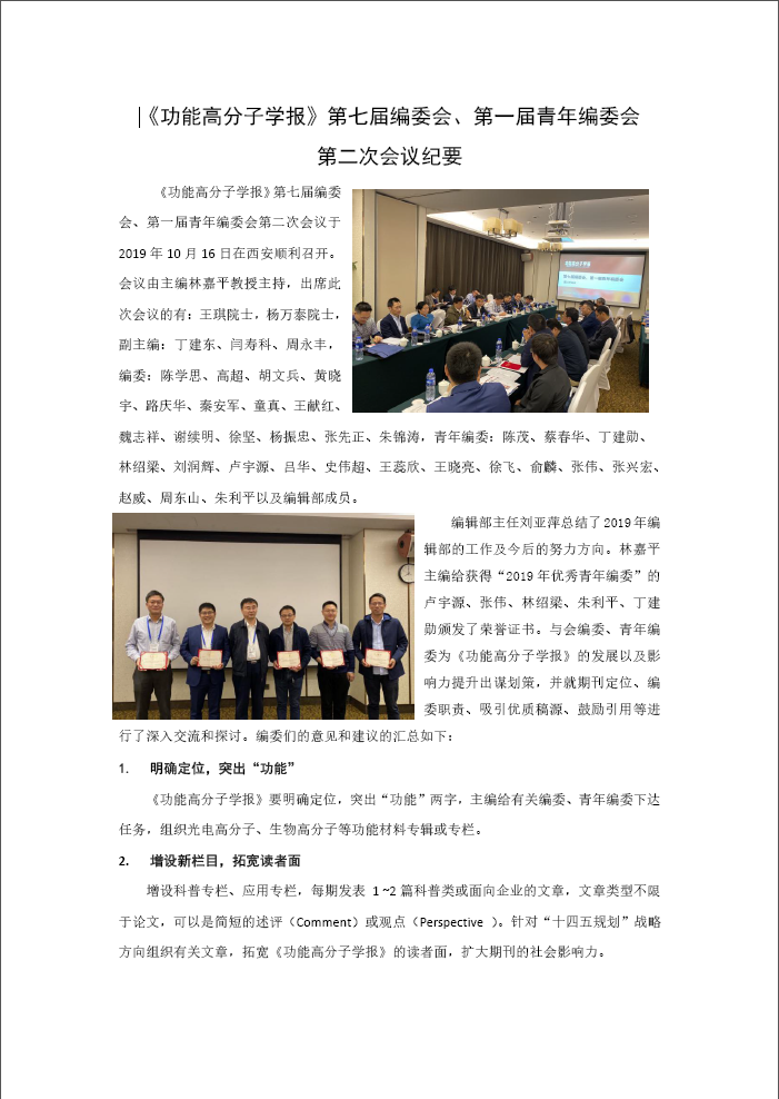 课题组张伟教授(右三)获得功能高分子学报2019 年度优秀青年编委荣誉称号。