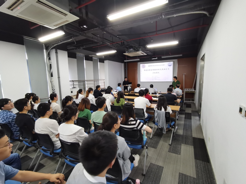 答辩委员会成员有:苏州大学的蔡远利教授,郭明雨教授,陈高健教授,张弓博士担任会议秘书。课题组全体老师和研究生参会。学位论文答辩于上午八点三十准时开始,课题组八位硕士生依次上台进行学位论文答辩。答辩委员会针对各位同学的研究工作进行了提问,并指出了学位论文、幻灯片细节、展示表现、实验记录等环节中的不足处。会后,经过全体老师讨论,宣布建议学位评议委员会授予答辩学生学位。