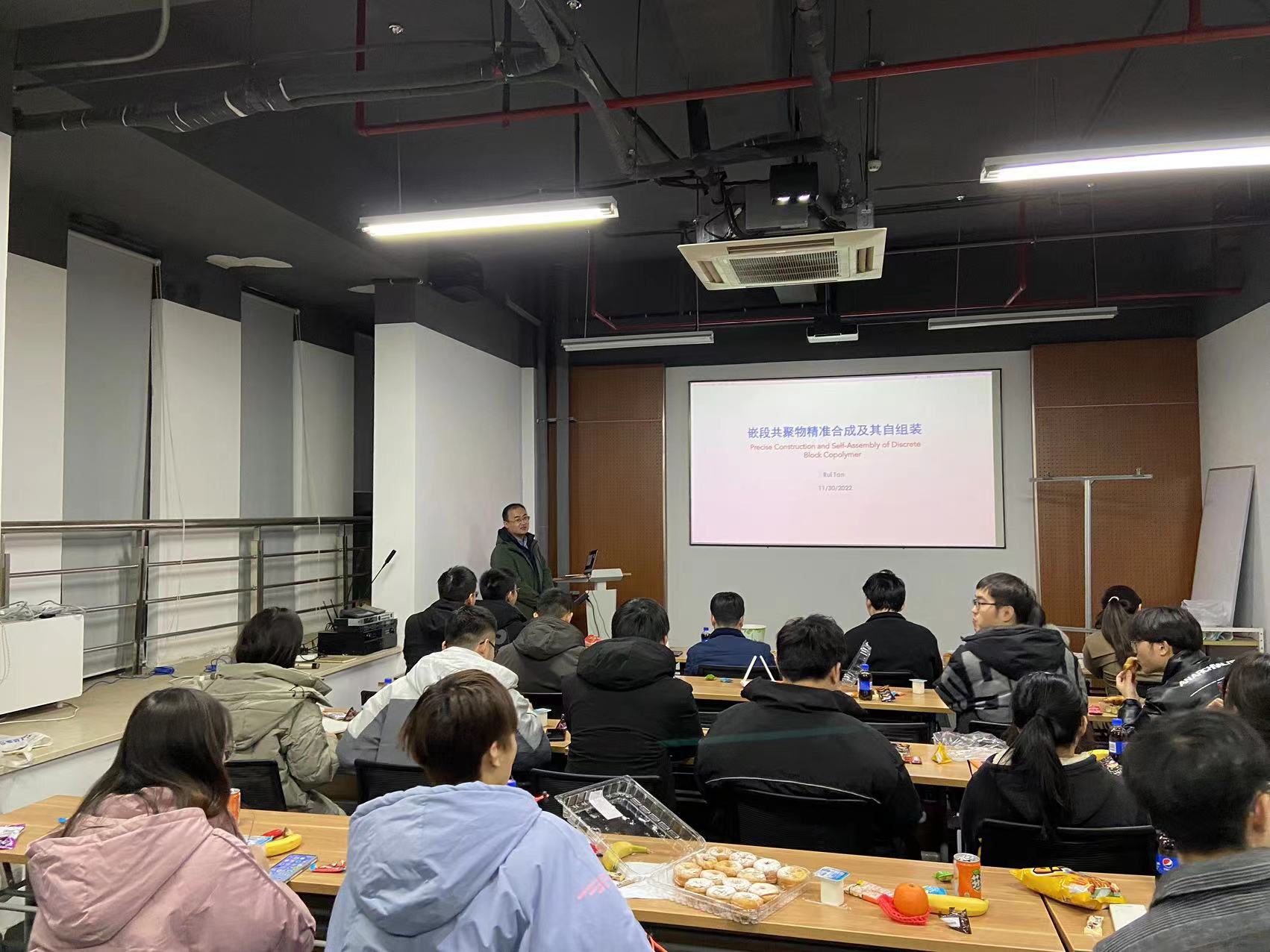 2022年11月30日晚18:30,本年度朱秀林课题组学术沙龙第五期在912-1114成功举行,本期的沙龙主题是谭睿博士作题为“嵌段共聚物精准合成及其自组装”的汇报。